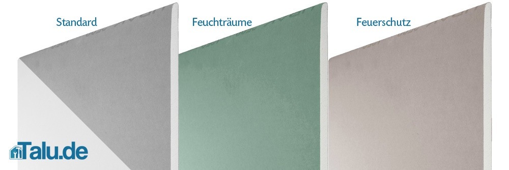 Die Preise für Trockenbauplatten richten sich nach ihrer Größe, ihrer Dicke und ihrer zusätzlichen Funktionen. Trockenbauplatten sind normalerweise hellgrau gefärbt. Feuchtraum-Trockenbauplatten sind dagegen hellgrün, um sie leicht unterscheiden zu können. Diese Platten haben eine zusätzlich Imprägnierung, die ein Einsickern und ein Vollsaugen mit Flüssigkeit verhindert. Neben der Imprägnierung kann eine Trockenbauplatte bereits mit einer Wärmeschutzschicht versehen sein. Diese besteht in der Regel aus einer aufgeklebten Hartschaumplatte.