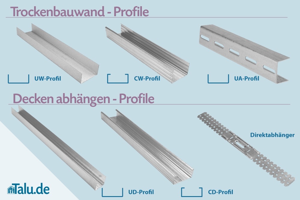 Überblick über die im Trockenbau verwendeten Profile und ihre Maße: