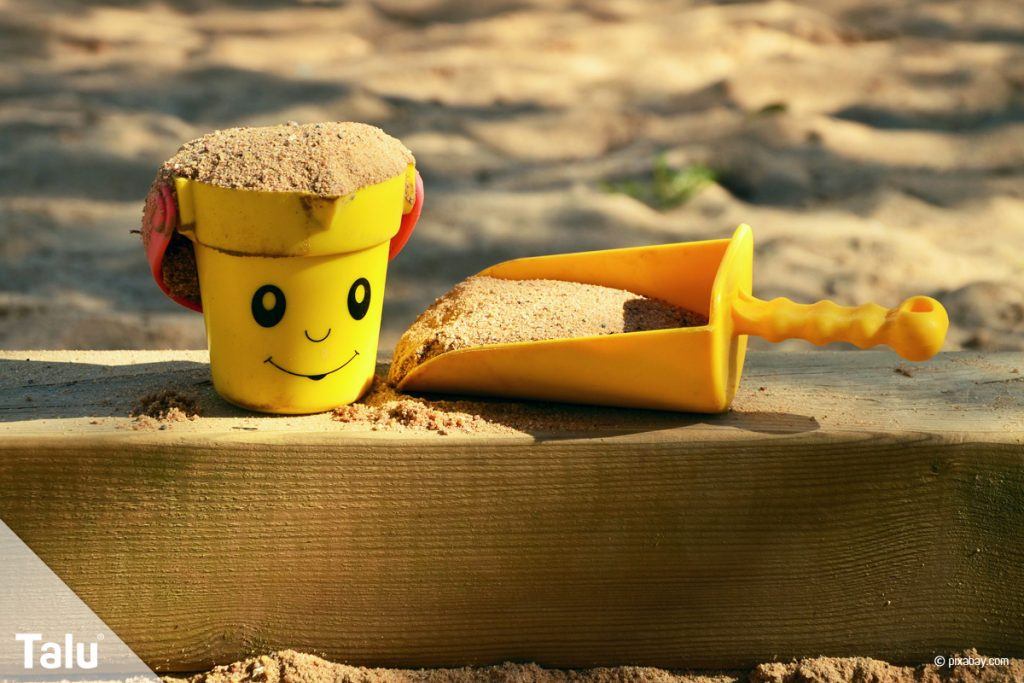 Kinder können sich im Sandkasten schnell die Stunden vergessen. Darum ist es wichtig, den Kindersandkasten an einem schattigen Plätzchen zu bauen. So wird verhindert, dass die Kleinen beim Spielen der prallen Sonne ausgesetzt sind. Außerdem sollte der Sandkasten immer in Sichtweite zu den Erwachsenen sein. Der kleine Kinderspielplatz sollte außerdem von außerhalb des Grundstücks weder sichtbar noch zugänglich sein. Das verhindert Diebstähle, Verschmutzungen und die Blicke unerwünschter Personen.