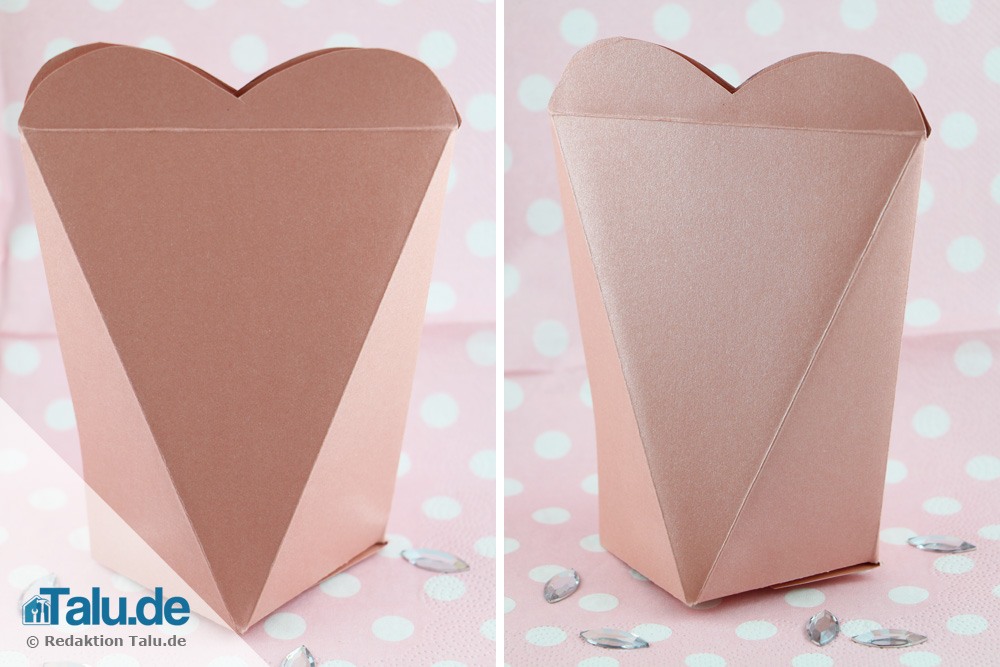 Zuerst sollten Sie sich überlegen, was genau die Schachtel können muss und wofür Sie diese brauchen. Soll es eine Geschenkverpackung zum Valentinstag oder zu Weihnachten werden oder lediglich als Aufbewahrungsort für Büroklammern dienen? Wir zeigen Ihnen verschiedene Varianten, die Sie auch verschieden einsetzen können.
