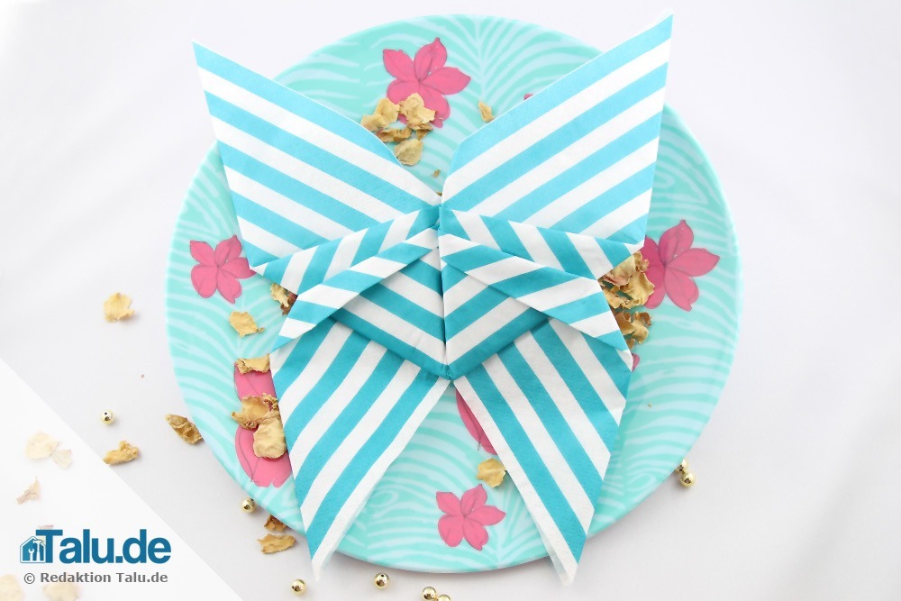 Suchen Sie passende Ideen für Ihre Tischdekoration im Frühling und Sommer? Der Servietten-Schmetterling könnte dann genau das Richtige sein. Falten Sie aus Servietten ganz einfach Schmetterlinge und peppen Sie so die Deko für die nächste Geburtstags- oder Gartenparty etwas auf. Ihre Gäste werden staunen. Unsere Faltanleitung mit Bildern und Anleitungs-Video zeigt Ihnen, wie es geht.