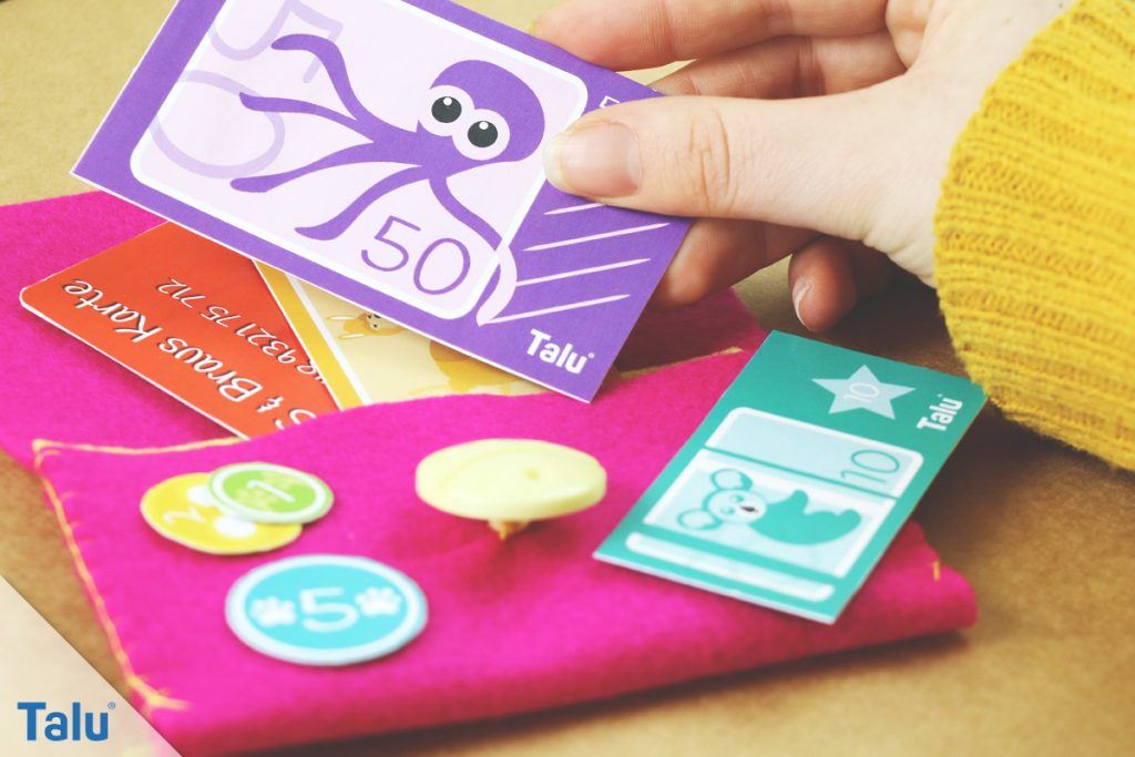 Ob nun beim Spielen mit dem Kaufmannsladen, in der Bank oder auf der Post – Kinder spielen gern mit Geld, sammeln es und tauschen es. Dabei ist das Spielen mit richtigen Geld natürlich gefährlich, es kann verloren oder kaputt gehen. Vermitteln Sie Ihren Kindern den Wert des Geldes, sowie auch den richtigen Umgang damit – das gelingt am besten mit Spielgeld. Talu hat ein eigenes Spielgeld zum Ausdrucken kreiert, dass auf lustige und bunte Weise diese Aufgabe erfüllt.