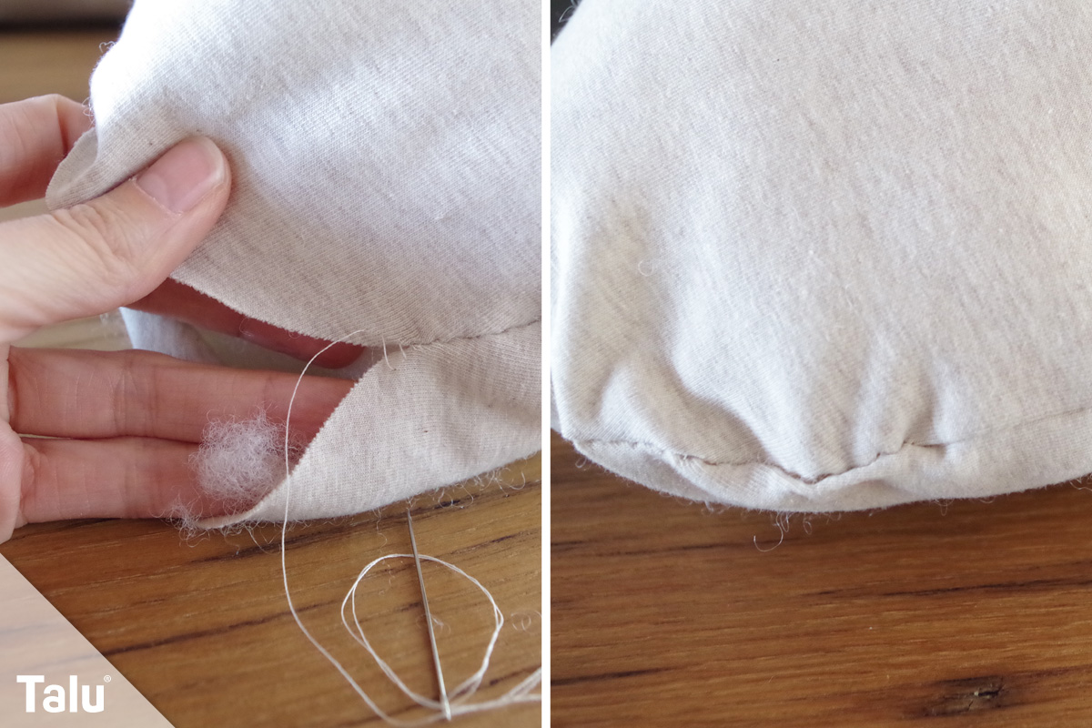 Achten Sie dabei darauf, dass genügend Füllwatte oder Kugeln verwendet werden, damit das Kissen einigermaßen stabil ist, aber immer noch angenehm weich.