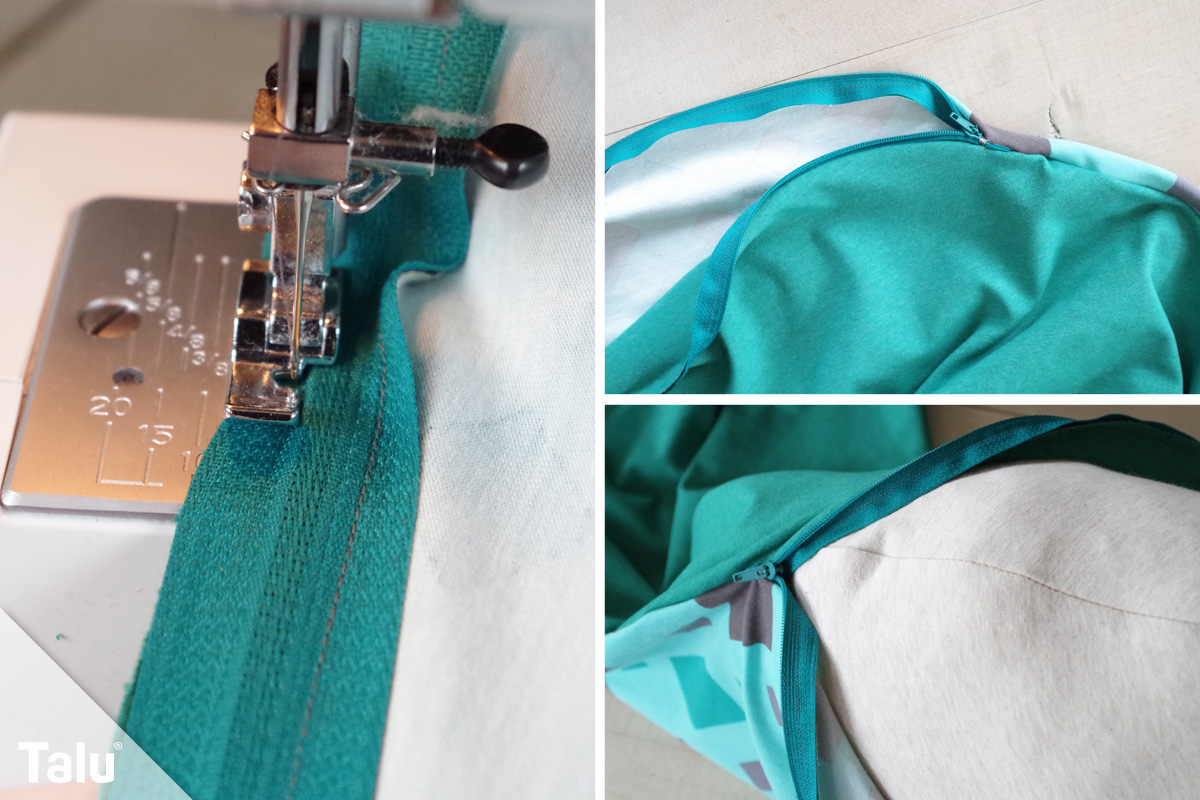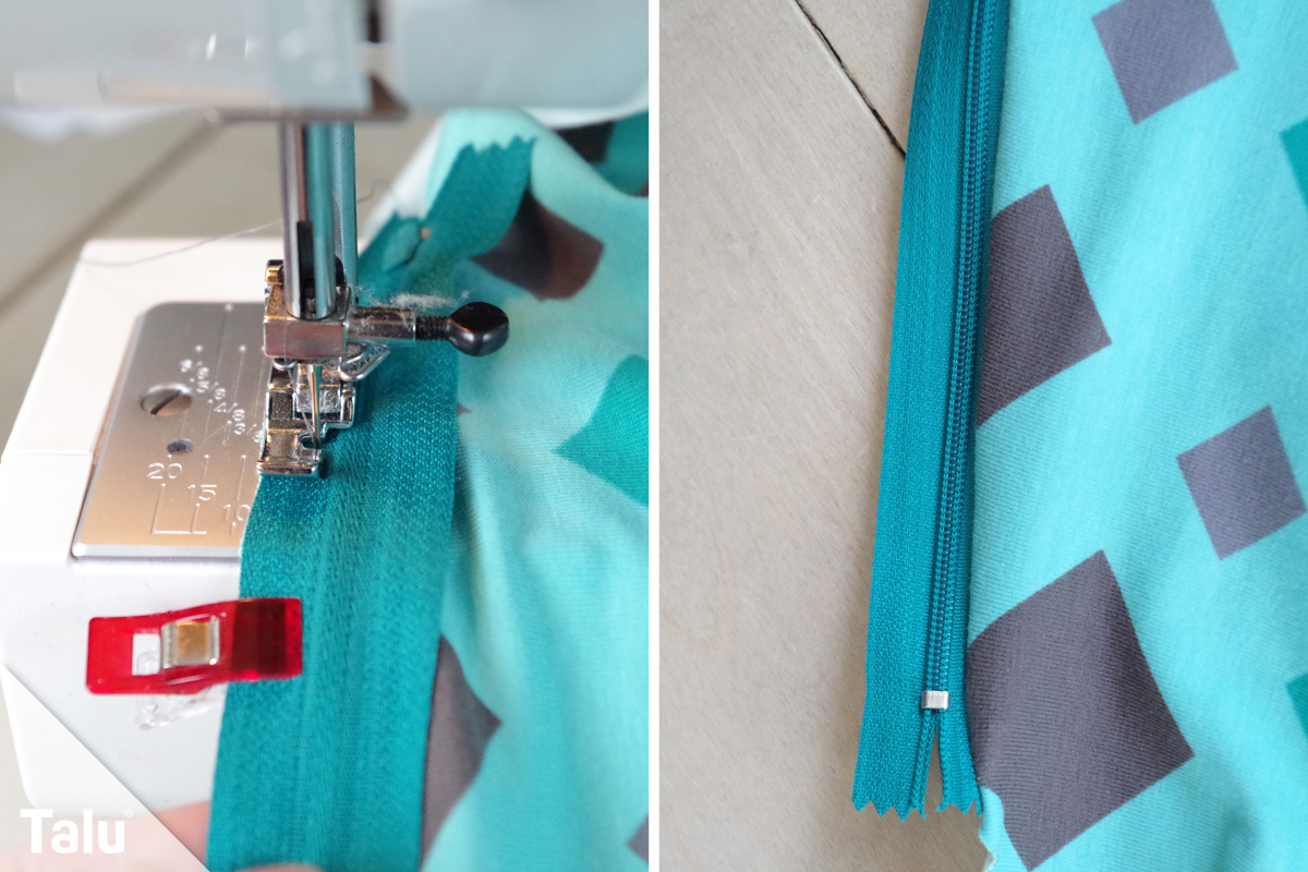 Tipp: Es ist unbedingt darauf zu achten, dass der Reißverschluss an sich – also die Zähne – nicht übernäht werden. Ansonsten kann der Reißverschluss nicht geschlossen werden.
