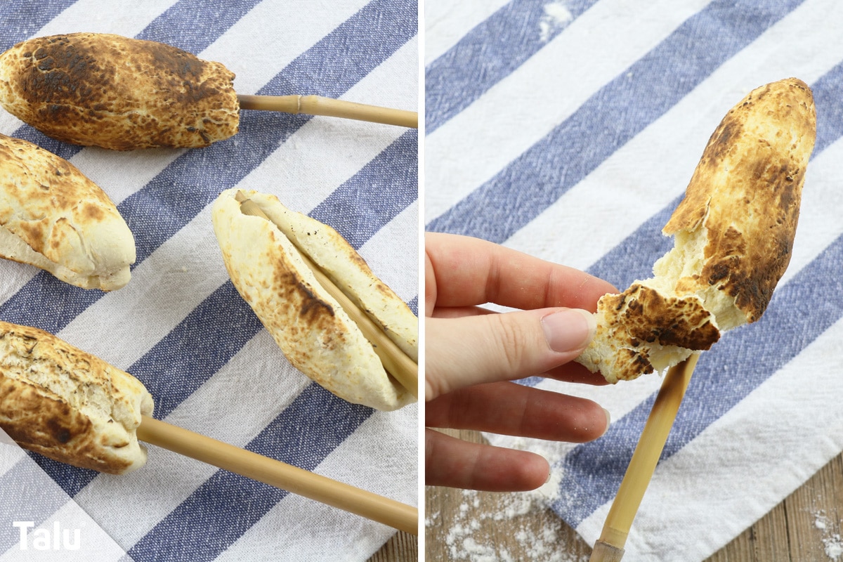 6. Schritt: Zu guter Letzt machen Sie Ihren Stock fertig und bereiten Sie Ihr Stockbrot zu.