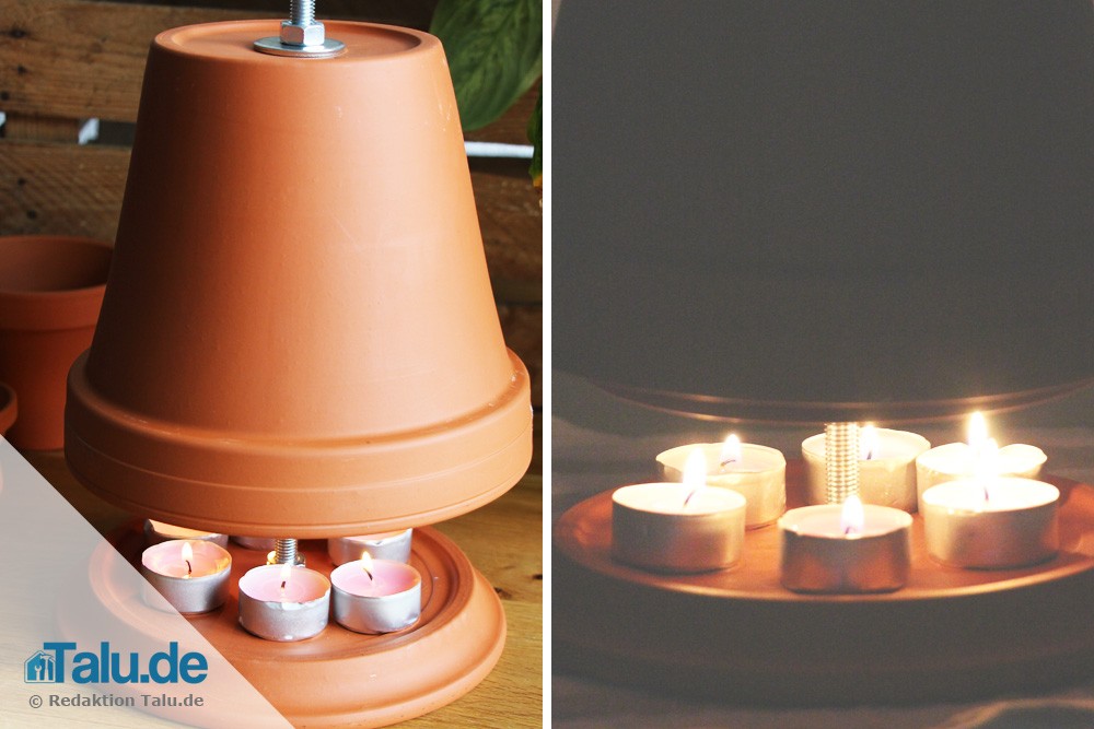 Das Material ist für rund 10 Euro im Fachhandel erhältlich. Daher handelt es sich um eine preiswerte Teelichtheizung, welche mit wenigen Handgriffen zusammengebaut ist. Verfügen die Blumentöpfe bereits über ein Loch im Boden und haben Sie auch in den Untersetzer bereits ein Loch gebohrt, dann benötigen Sie für den Zusammenbau rund 5 Minuten.
