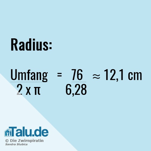 Zuerst benötigen Sie den Hüft-Umfang. Messen Sie dazu bei sich selbst (oder Ihrem „Model“, wenn der Schnitt für jemand anderen gedacht ist) die breiteste Stelle (am Po). Dann wird gerechnet, da wir den Radius brauchen (in meinem Fall wird es ein Kinderrock mit einem Hüftumfang von 76 cm):
