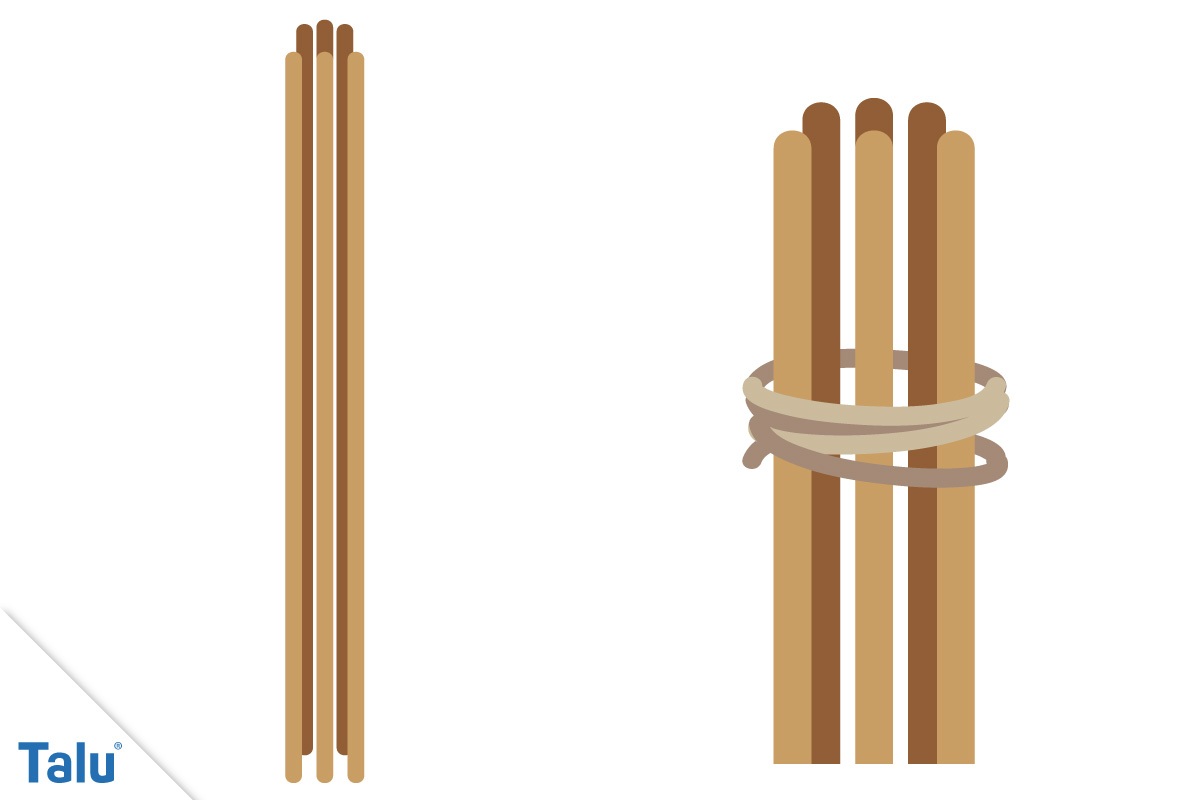 1. Schritt: Nehmen Sie alle Holzstiele gerade zusammen.