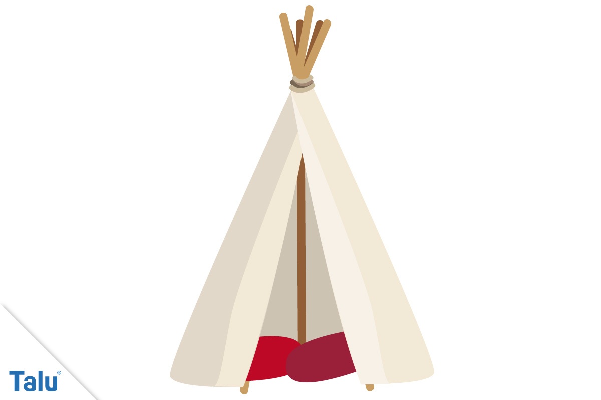 Für ein einfaches Tipi aus dem Handel legt man schnell über 100 oder gar 150 Euro hin. Selbstverständlich ist ein solches Indianerzelt etwas sehr Schönes, allerdings besteht es im Grunde lediglich aus Holz und Stoff, Materialien, die nicht so teuer sind. Kurzum: Finanziell kommen Sie mit einem selber gebastelten Kinderzelt wesentlich besser davon als mit einem fertig gekauften. Zudem haben Sie bei der individuellen Variante die Möglichkeit, das Design exakt an Ihre Vorlieben anzupassen und ein echtes Unikat zu erschaffen. Nicht zu vergessen, dass Sie dank unserer logischen Grundanleitungen und der verschiedenen Ideen in Bezug auf die Bespannung des Zeltes den Bau zügig abschließen und Ihre Kreation schon unmittelbar danach testen und genießen können. Also los, zaubern Sie Ihr eigenes Tipi für drinnen (ohne nähen zu müssen)!