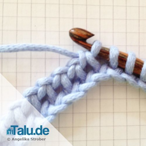 • 5. Reihe und jede weitere ungerade Reihe: zurückhäkeln wie in der 3. Reihe