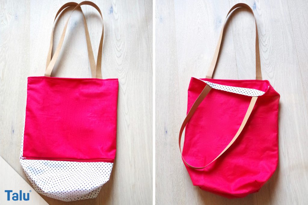 Rechtzeitig zu Sommerbeginn möchte ich Ihnen heute zeigen, wie man eine schicke Umhängetasche zum Wenden ganz einfach selber machen kann. Ob für Einkäufe, Strandbesuche oder in der Arbeit: Die Tasche ist vielseitig einsetzbar und durch den Zierreißverschluss ein echter Hingucker. Der Innenraum bietet genügend Platz für einen Laptop, Geldbörse, Handy usw. Außerdem kann man den Umhängebeutel je nach Outfit ganz einfach wenden.