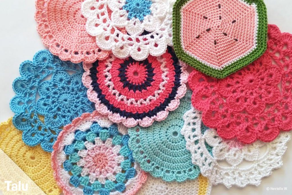 Wer kennt sie nicht, die hübschen gehäkelten Untersetzer, die auf jedem Tisch zum Hingucker werden. Ob für die Tasse, den Becher oder das Trinkglas, ein bunt gehäkelter Untersetzer wirkt persönlich und sehr dekorativ. Besonders wenn diese dann auch noch schnell fertig gestellt werden und zu sämtlichem Geschirr perfekt passen.