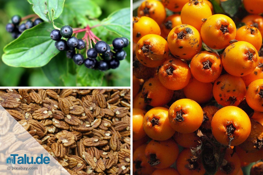 Aus mehreren Vogelnährgehölzen können Sie eine Hecke entstehen lassen. Mit der Anpflanzung verschiedener Varianten haben Sie in spätestens zwei Jahren einen wunderbar bunten Sichtschutz – und im Herbst viele gefiederte Besucher im Garten, die ihren Hunger stillen wollen. Auch hierzu diverse Tipps: