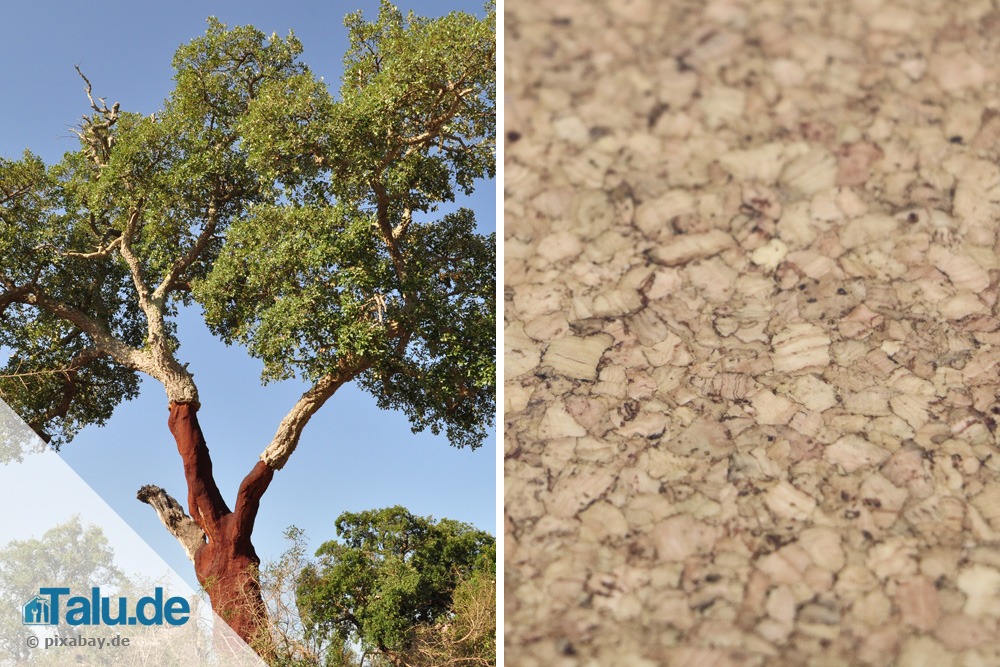 Kork ist ein Naturstoff. Das weiche, gummiartige Material wird aus der Rinde von Korkeichen gewonnen. Diese wachsen in vorwiegend in warmen Regionen Südeuropas wie Italien, Griechenland, Südfrankreich und Spanien. Der Anbau von Korkeichen ist ein sehr langwieriger Prozess, für den viel Erfahrung notwendig ist. Das macht Korkwerkstoffe relativ teuer und nur begrenzt in der Verfügbarkeit.