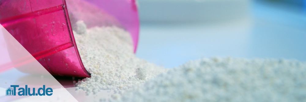 Tipp: Zusätzlich kann Waschsoda genutzt werden. Das löst Schmutz aus der Wäsche und reinigt gleichzeitig die Maschine. Einfach einen Esslöffel zum Waschpulver dazugeben. Vorsicht bei empfindlichen (Kunst-) Fasern und Buntwäsche. Die Lauge kann dieses angreifen.