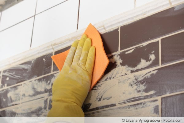 - überschüssige Fugenmasse mit einem Schwammbrett auswaschen