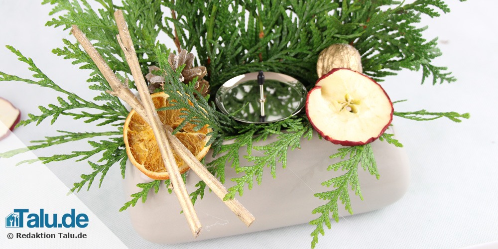 Weihnachtsgesteck aus Naturmaterialien selber machen