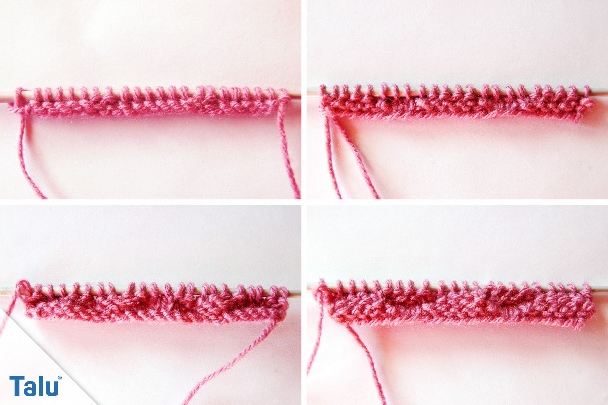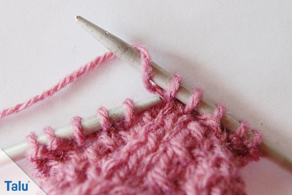 3. Reihe: 2 Maschen links, * 2 Maschen rechts, 2 Maschen links