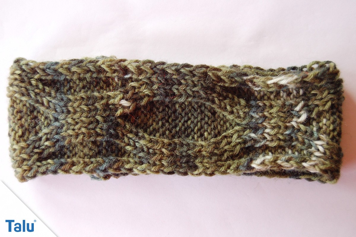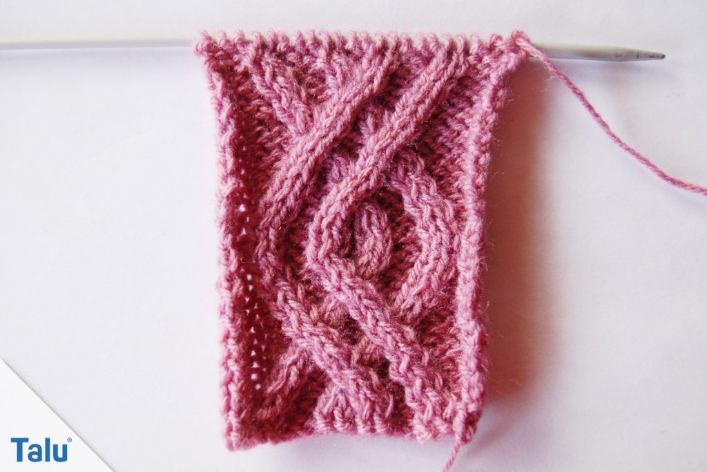 Nun ist der erste Teil des Wellenzopfs fertig. Den zweiten Abschnitt stricken Sie fast genauso. Sie kreuzen das Wellenmuster lediglich andersherum.