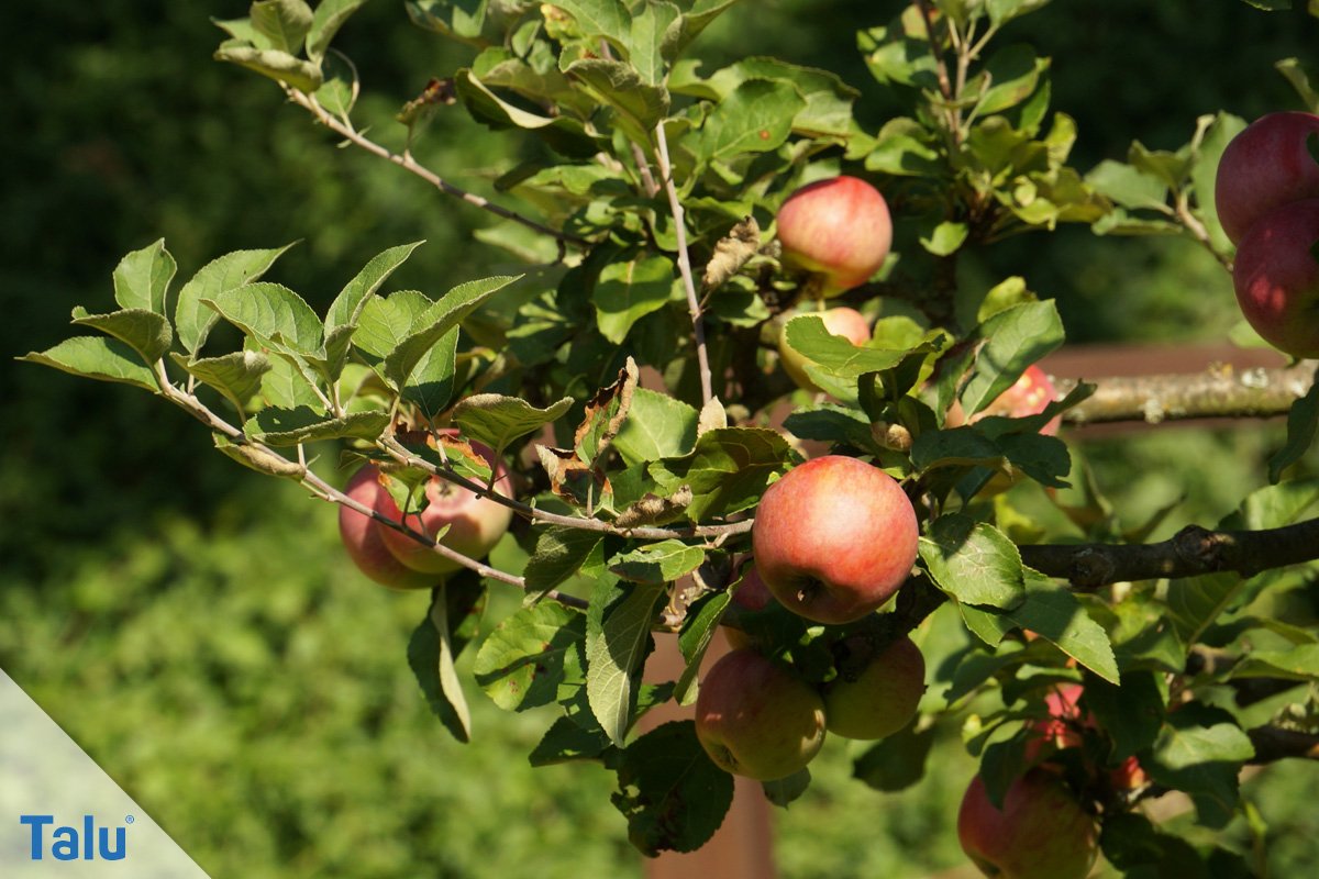 Die Bekämpfung mit Pflanzenschutzmitteln gestaltet sich relativ schwierig, da aufgrund der Größe der Gehölze kaum alle Blätter erreicht werden können. Besser ist es, einem Befall vorzubeugen, in dem man beispielsweise bereits beim Kauf auf resistente Sorten achtet. Zudem kann man den Zierapfel durch eine optimale Nährstoffversorgung widerstandsfähiger machen, da ein fruchtbarer Boden die Abwehrkräfte dieser Gehölze stärkt. Eine weitere vorbeugende Maßnahme ist der regelmäßige Schnitt der Krone. Diese sollte nicht zu dicht sein, sodass das Laub immer wieder schnell abtrocknet.