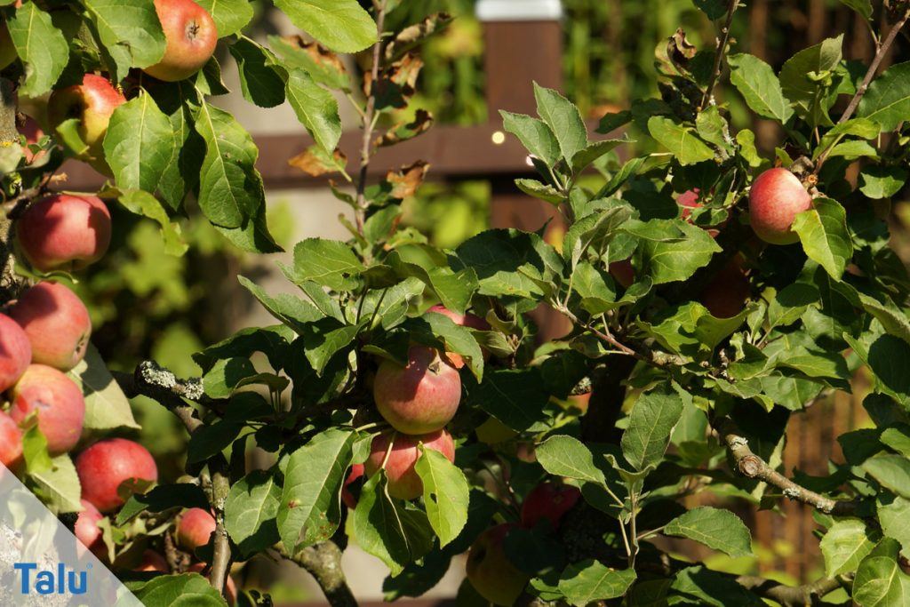 Im Herbst oder Winter sollte man die Krone des Zierapfels ausdünnen bzw. auslichten. Das ist vor allem dann empfehlenswert, wenn sich tote Äste oder Zweige in der Krone befinden oder die Krone zu dicht ist, was unter Umständen auch einen Pilzbefall begünstigt.